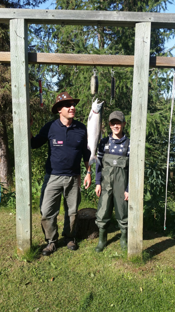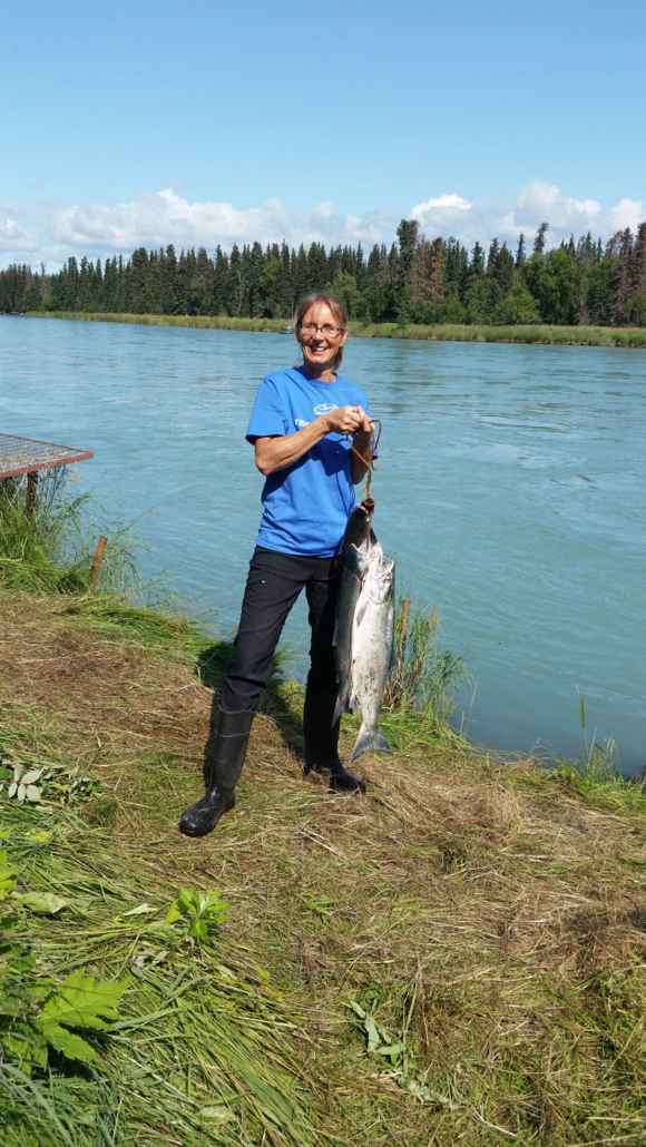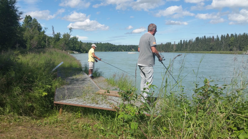 Fischsaison am Kenai River beginnt Ende May mit dem Koengislachs (Chinook) bis Ende Juli. Der weltgroesste Koenigslachs laicht in der Nachbarschaft am Slikok Creek ab.
