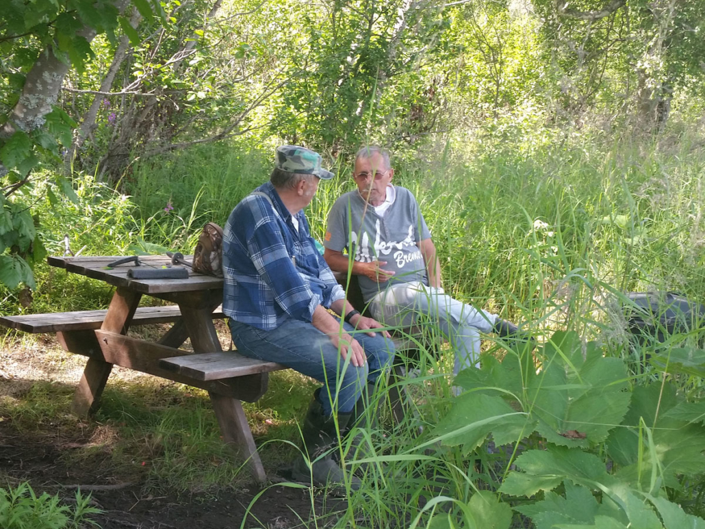 Auch Regenbogenforellen und Dolly Varden lassen sich von unseren eigenen Stegen aus fangen, da unser Abschnitt im Fluss in einer Aussenkurve liegt, wird bei uns Fischabfall angeschwemmt, von dem sich die Forellen ernaehren.