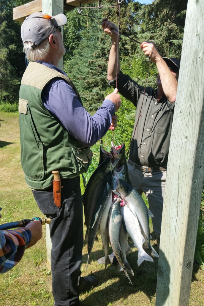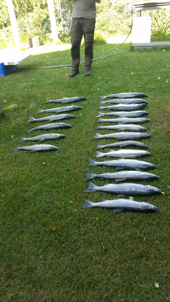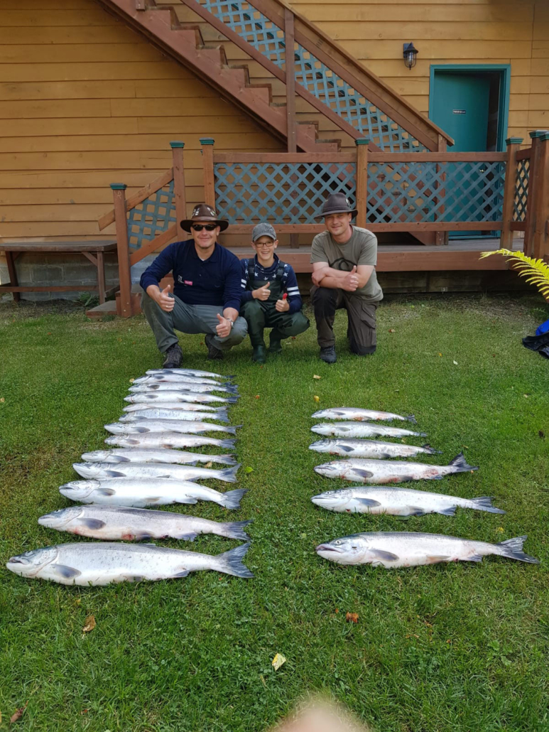 Silberlachse (Coho) – der erste Lauf – ist um Mitte August und sehr beliebt unter den Fliegenfischern. Der zweite Silberlachslauf beginnt meist Mitte September, dieser kann auch von den eigenen Stegen aus gefangen werden.