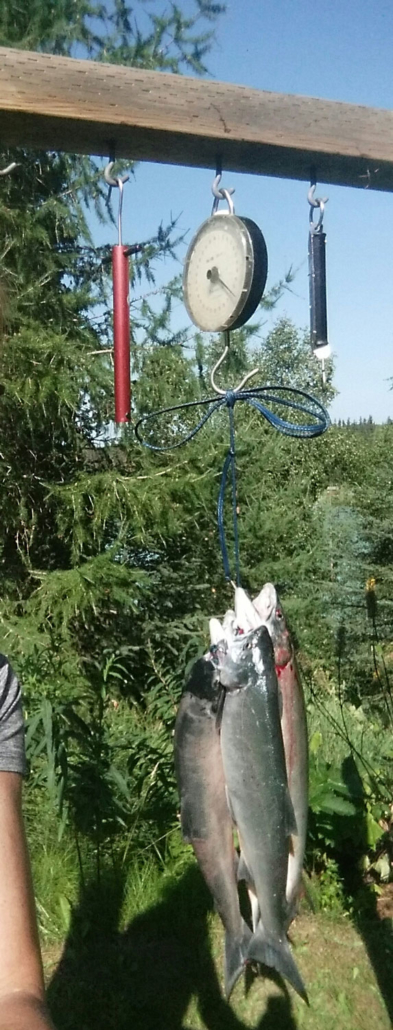 Rainbow Trout, and Dolly Varden can be caught from our private banks, too since the trout is feeding of fish guts thrown in the river gattering in our river front.