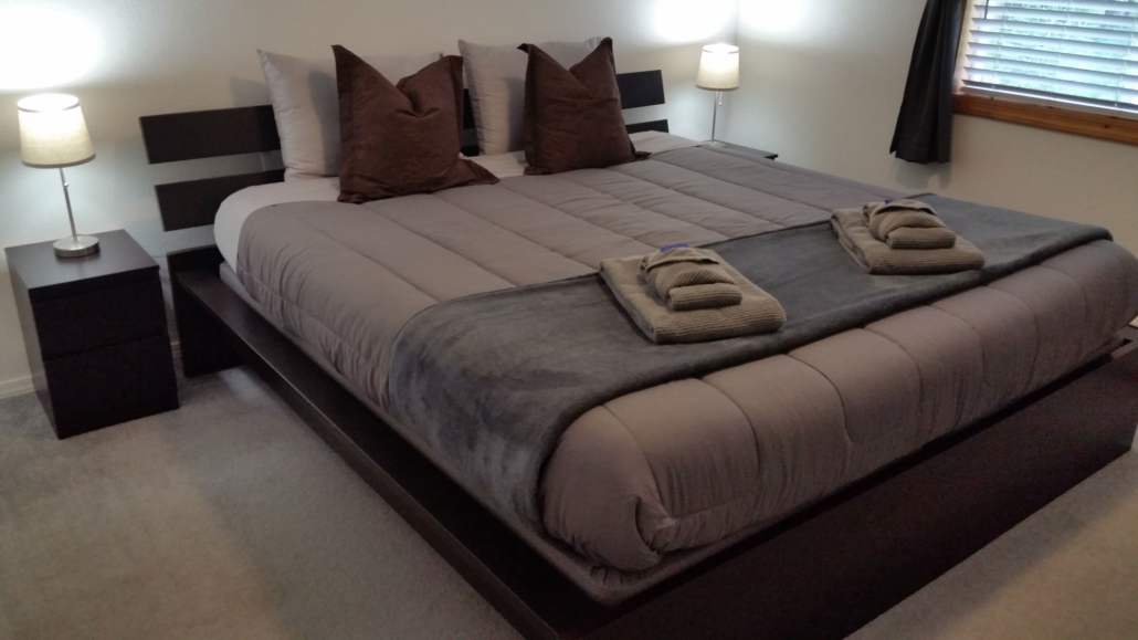 - master bedroom with a Kingsize bed overlooking the Kenai River