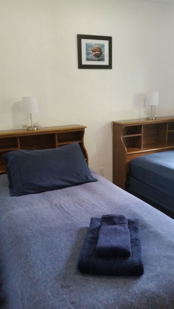 Gaestezimmer sind komfortabel und praktisch eingerichtet, manche mit Blick auf den Kenai River, die Badezimmer werden unter den Gaesten geteilt: